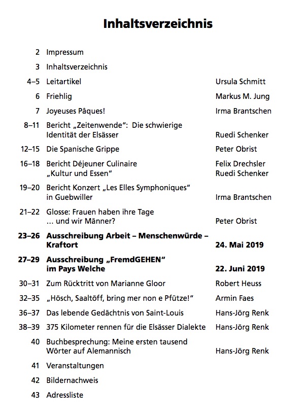 2019: Elsass-Gazette - unser Mitteilungsblatt